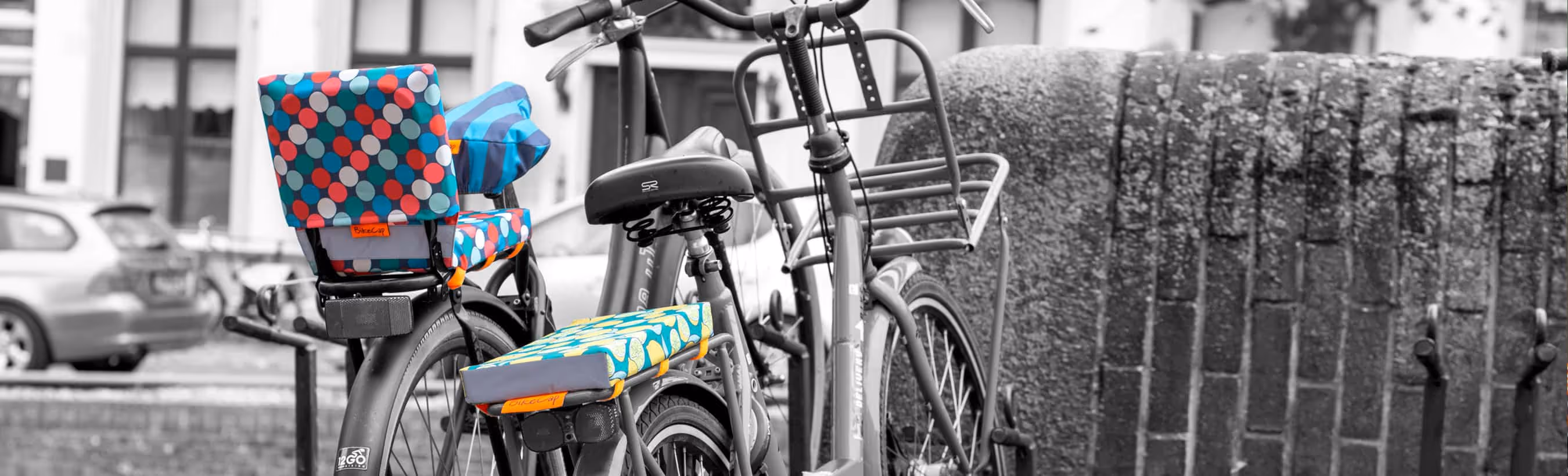 Zusätzlich zu Fahrradsattelbezüge BikeCap bietet verschiedene Zubehörteile, mit denen Sie Ihr Fahrrad vollständig an Ihren eigenen Stil anpassen können. Fahrradkistenabdeckungen, Handwärmer, Kissen, Packtaschen und sogar Regenhüte in mehr als 30 Designs. 'Modisches Fahrradfahren' für alle!